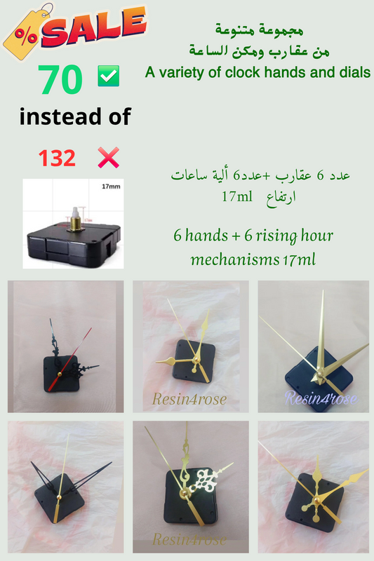 Package includes a clock mechanism and clock hands in various shapes and colors.