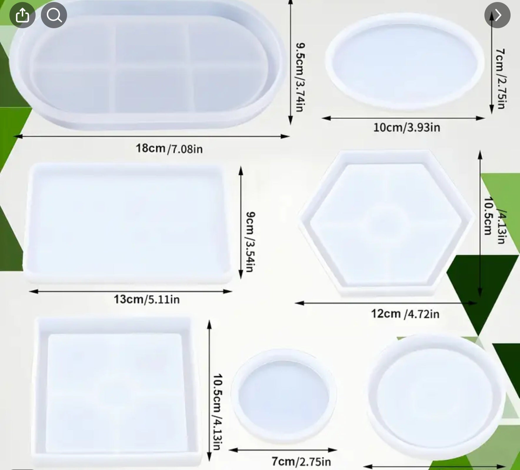 Deep molds in different shapes, a plate for pouring resin and concrete