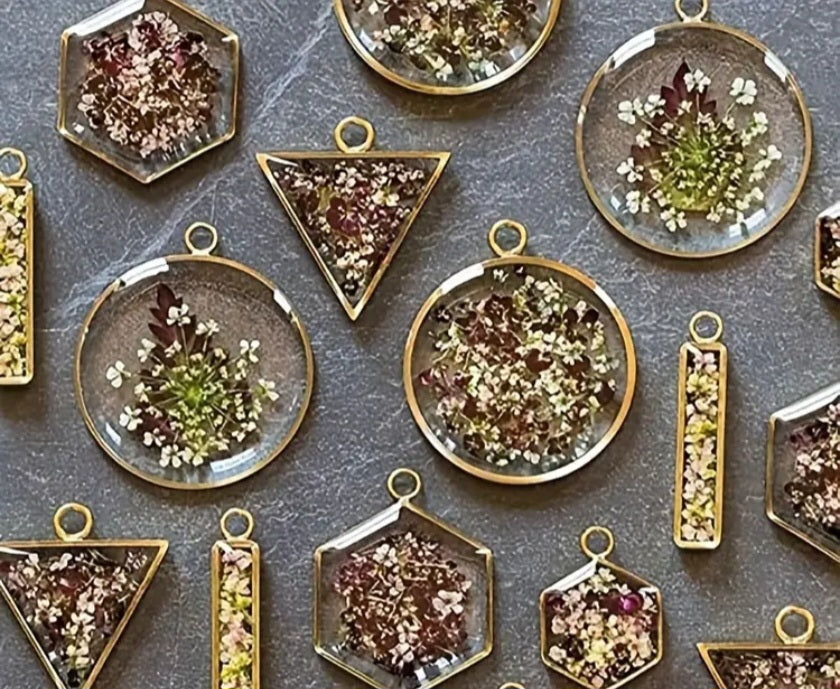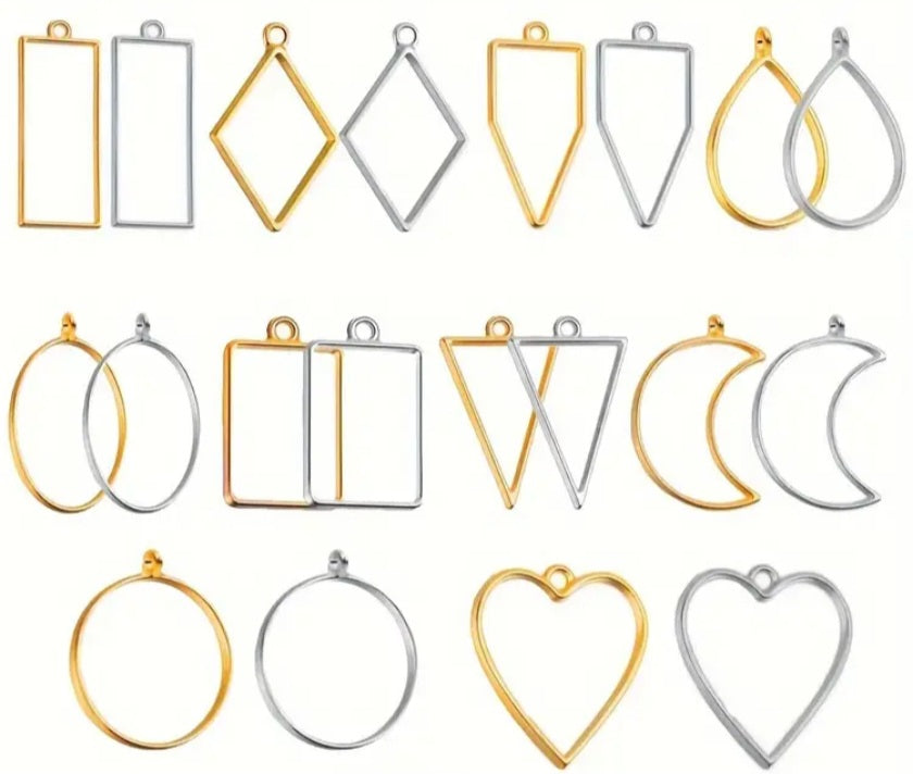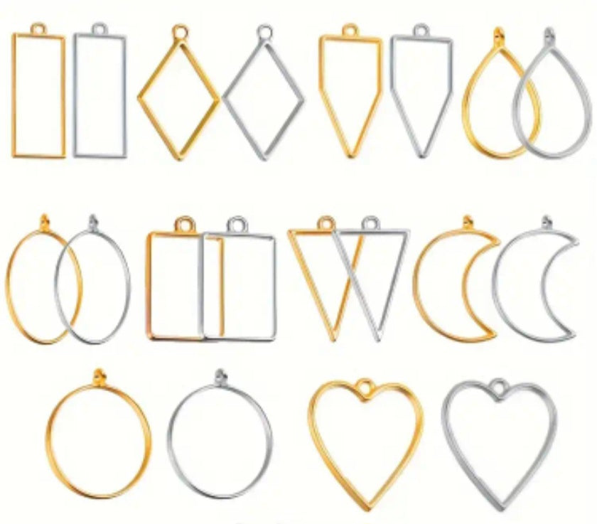 Resin casting frame made of metal alloy with geometric design in the shape of a frame for casting resin and making attractive accessories